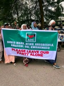 The leadership crisis within the African Democratic Congress deepened on Thursday as a faction led by Nafiu Bala staged a protest at the headquarters of Independent National Electoral Commission in Abuja, demanding formal recognition of its leadership.